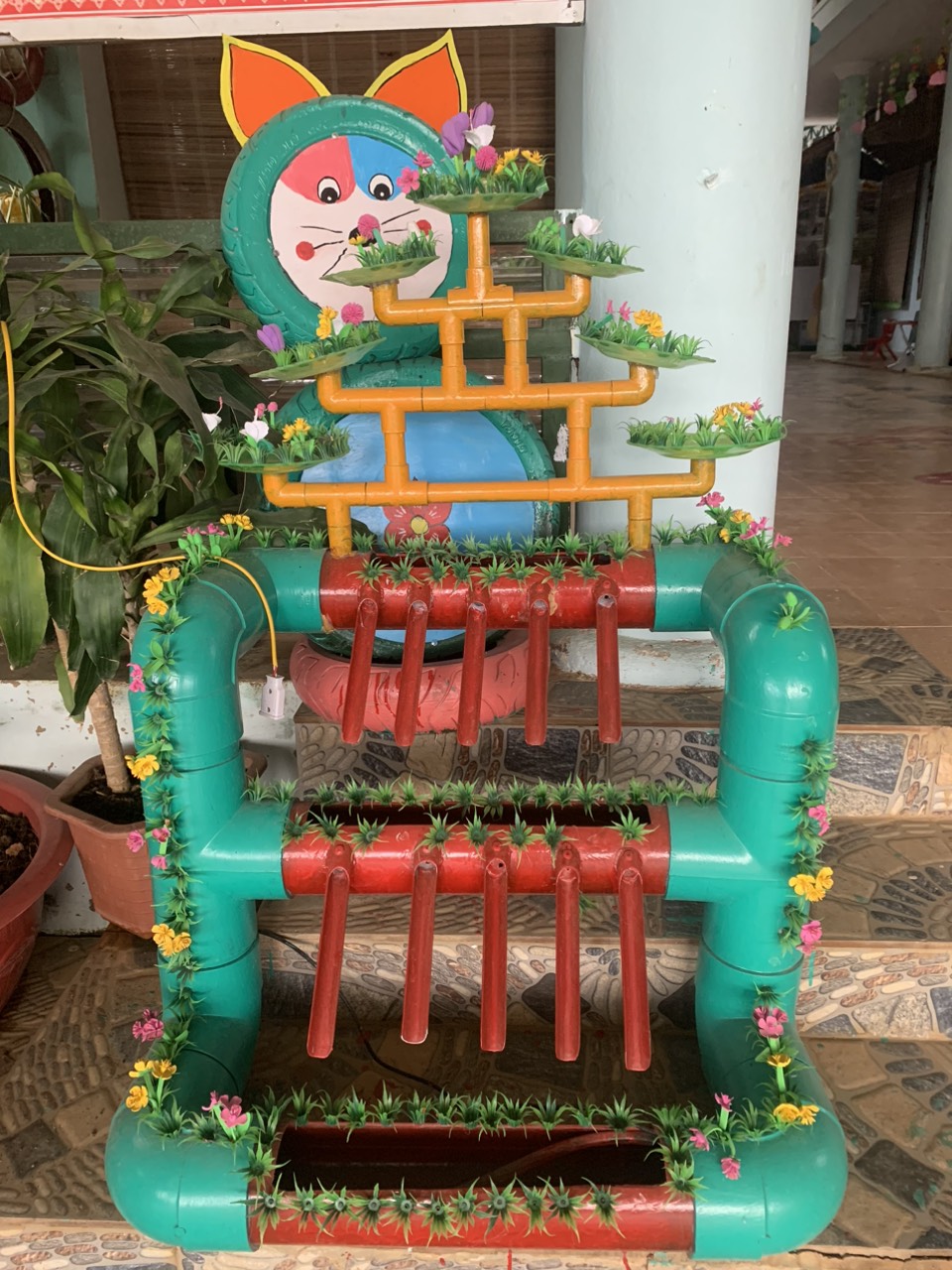 Từ những nguyên vật liệu phế thải và nguyên liệu thiên nhiên nhà trường đã thiết kế bộ đồ chơi, mô hình sống động phục vụ cho các hoạt động vui chơi và học tập của bé. Bộ đồ dùng nhằm cho trẻ thỏa sức vui chơi, hoạt động trải nghiệm, sáng tạo, phát triển tất cả các lĩnh vực cho trẻ, trang bị cho trẻ một số các kỹ năng sống, tạo môi trường để trẻ tiếp cận với những hoạt động, kiến thức trong cuộc sống. Đây cũng là một giải pháp tích cực để xử lý đồ phế liệu vật liệu thiên nhiên đã qua sử dụng mang lại giá trị sử dụng, lợi ích cho con người và môi trường sống.